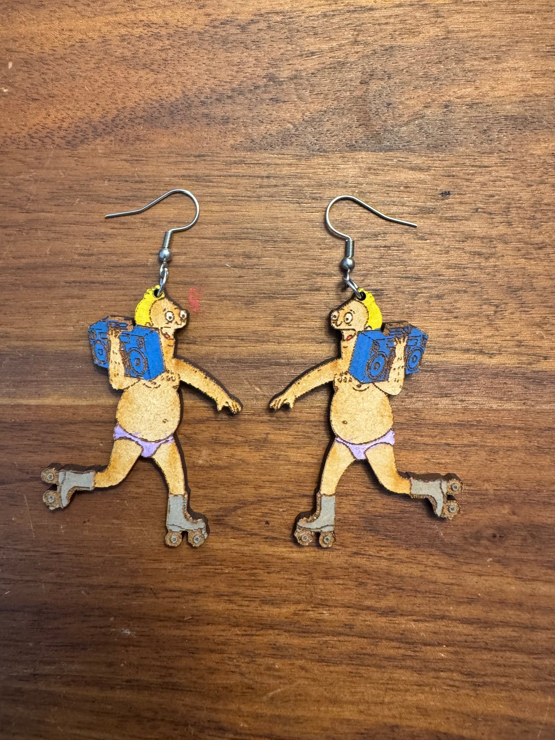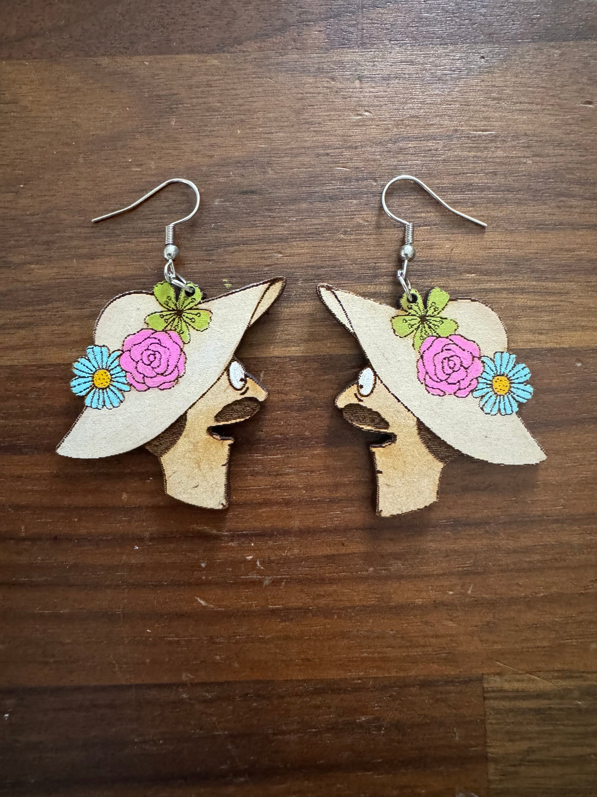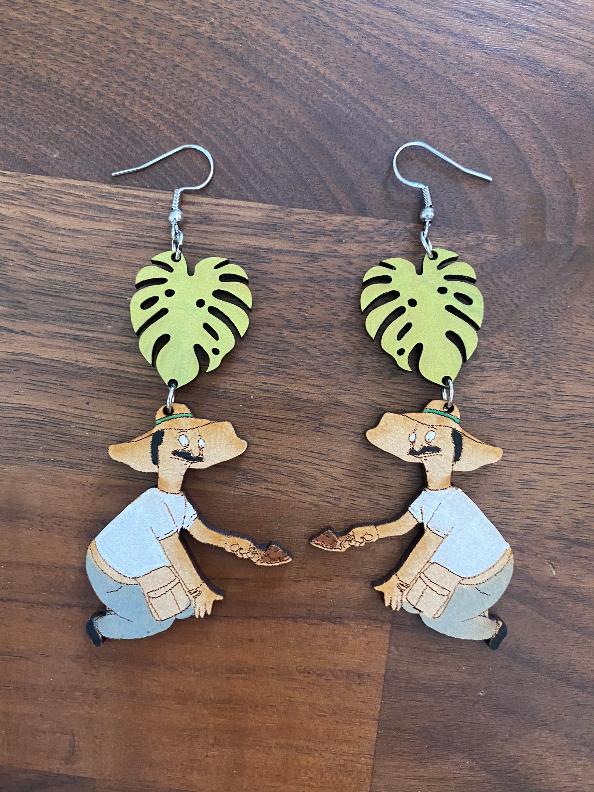 Earrings made from wood.