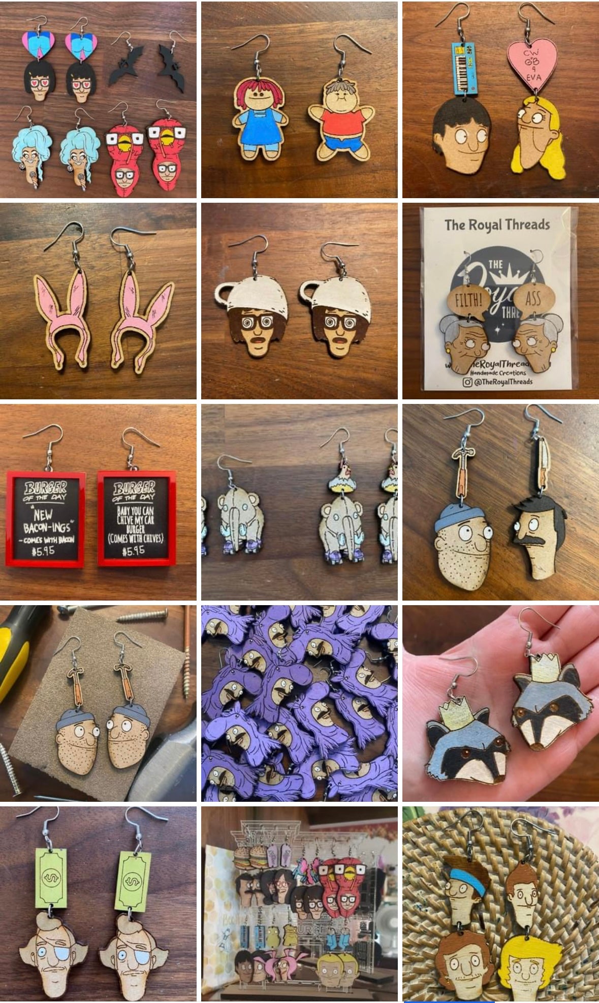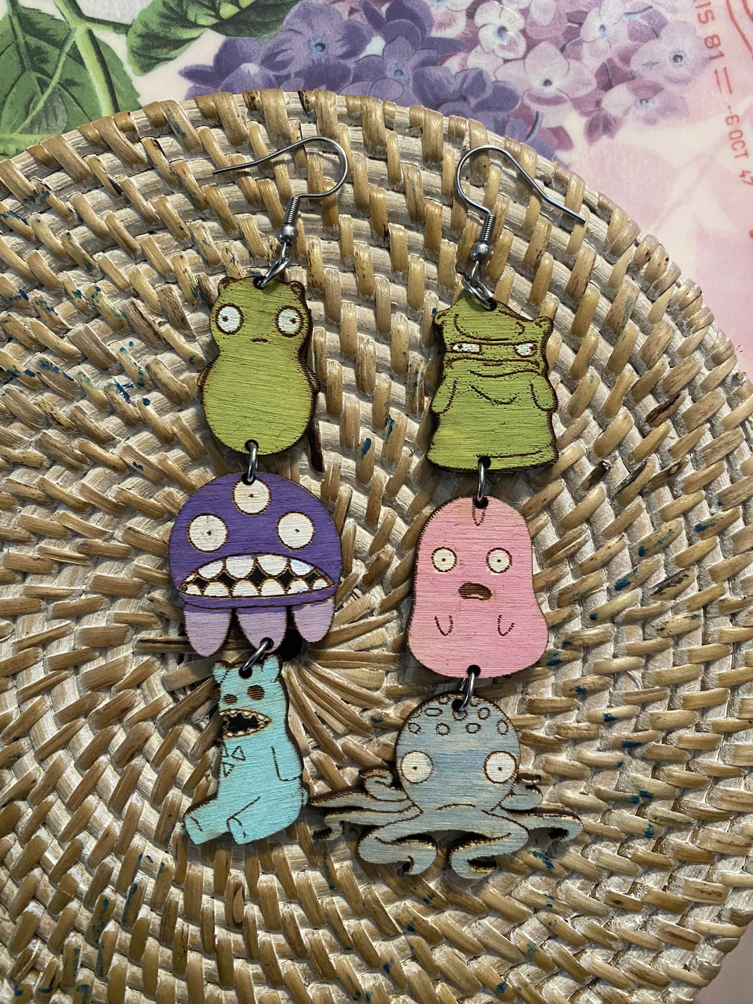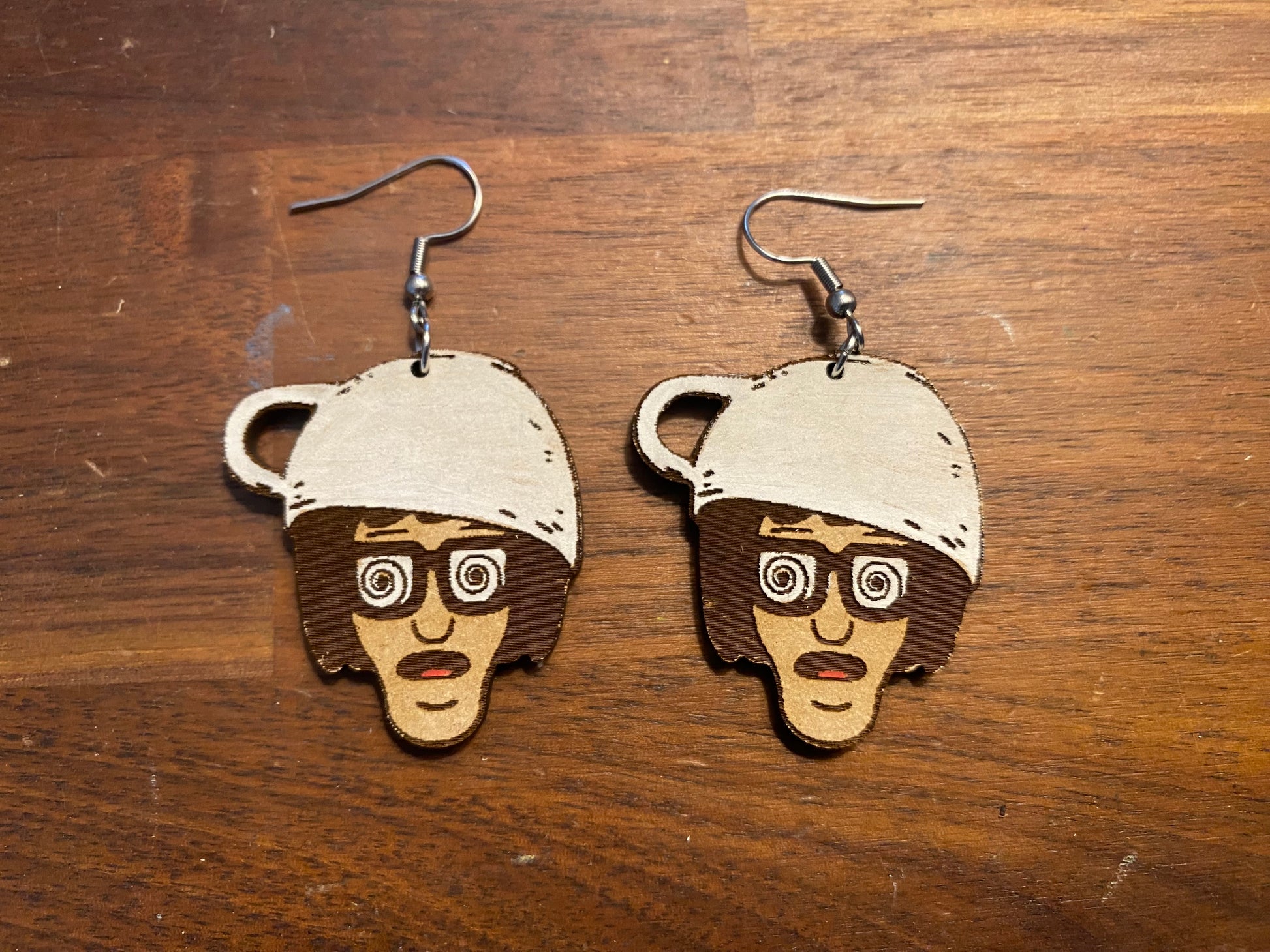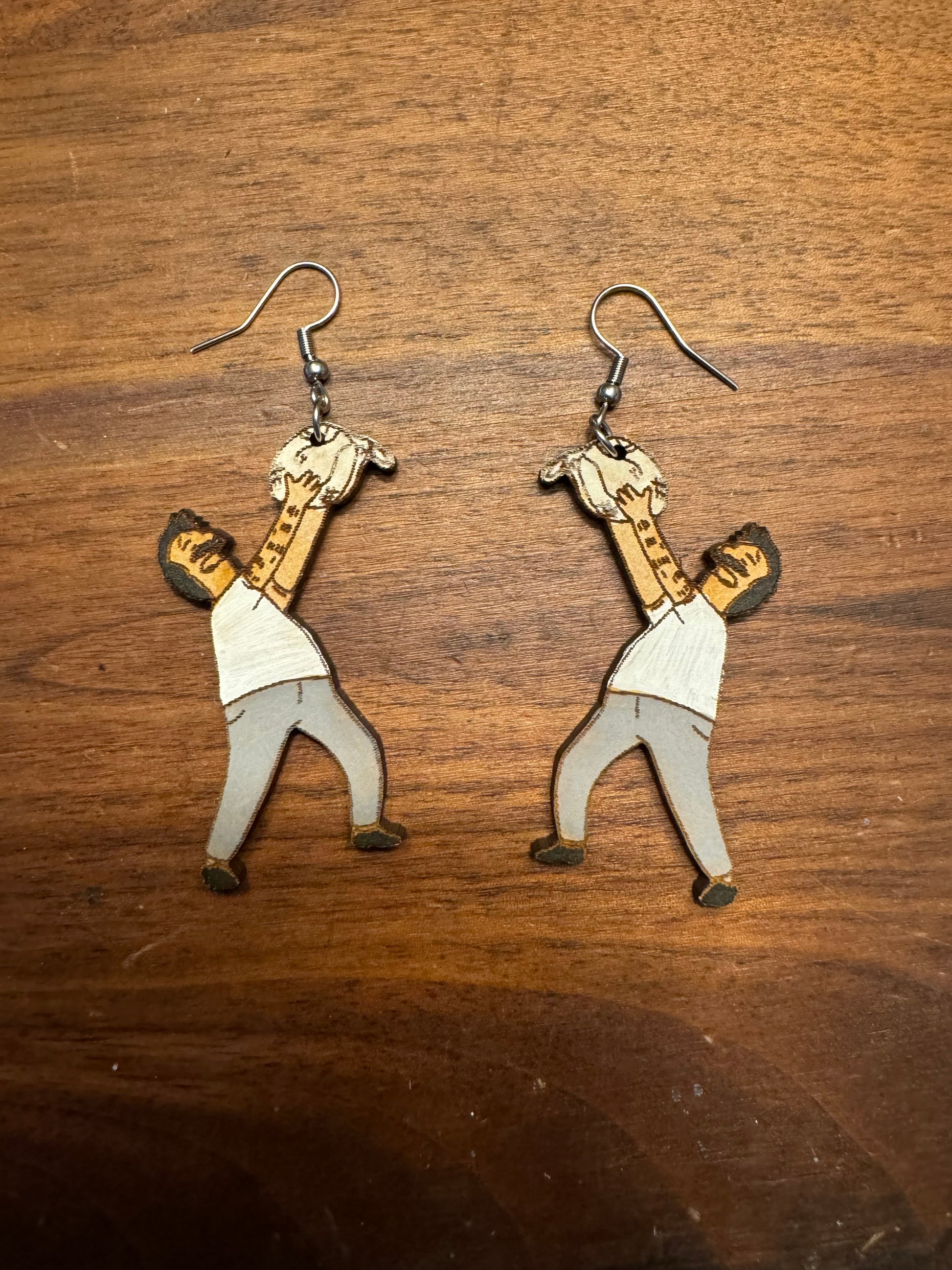 Earrings made from wood.